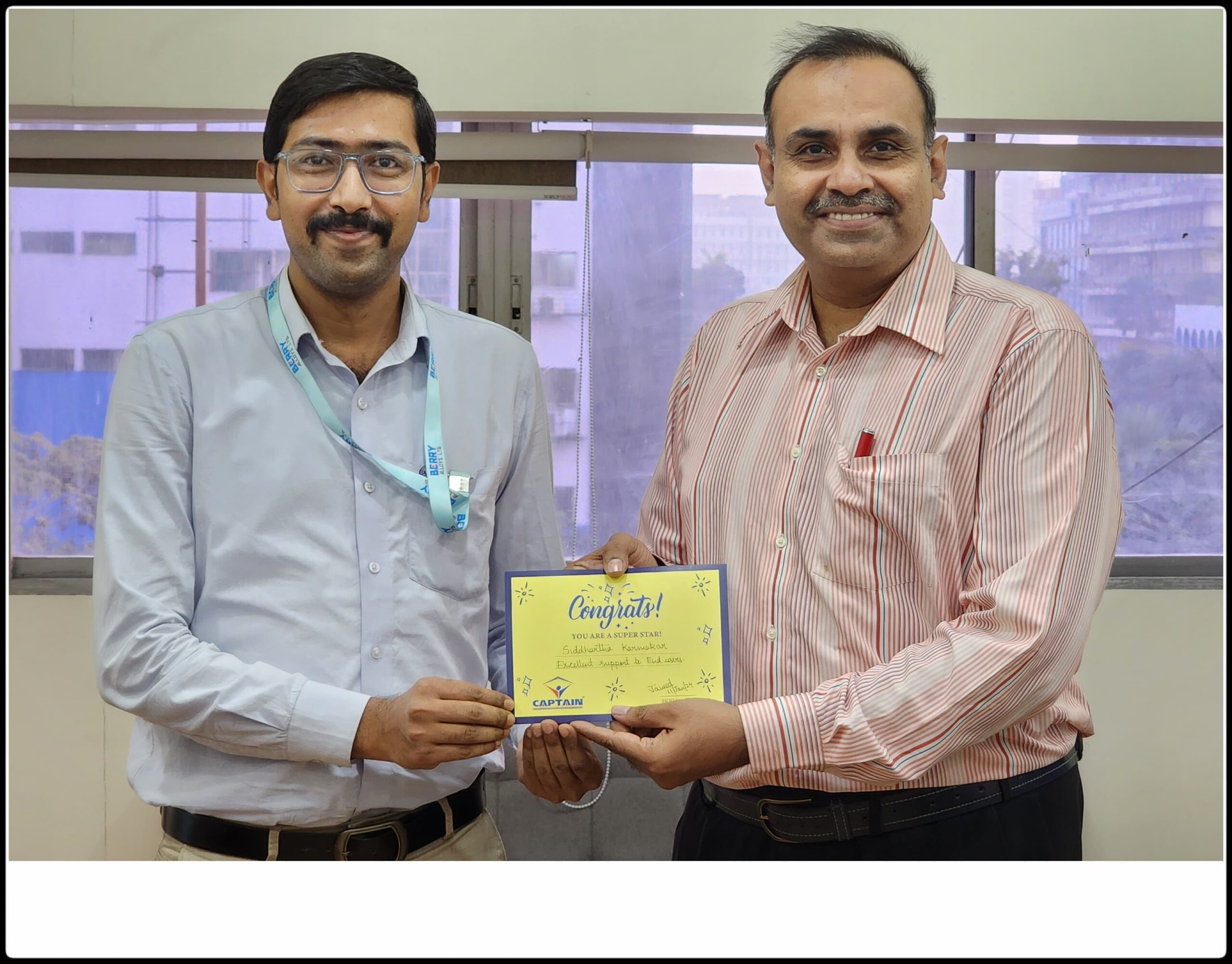 Siddhartha Karmakar Receiving the Star Performer Award at Captain SteelCaptain Steel Chief Information Officer Jawed Ahmed Awarding Star Performer Atanu Mukherjee January 2024