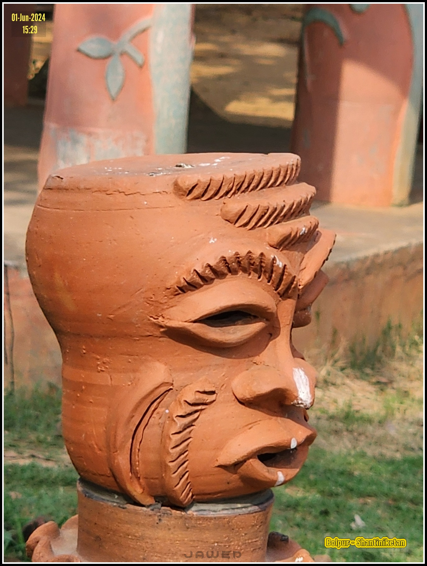 Noticed this clay art piece and clicked the picture. I am guessing the artist would have created this as a pot for plants. But now its serving as a big Ash Tray for cigarettes. Most of the art pieces here have been created by the students of Vishwa Bharti. The Shilpagram charges a small ticket fee for entry. The areas are demarcated state-wise inside the park. When I visited, it was hot and humid, so could not spend a long time there. Its a nice place for clicking photographs though.